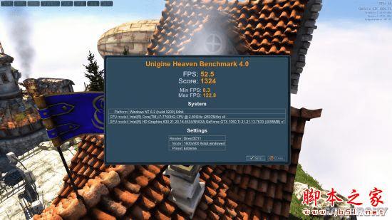 在Unigine Heaven Benchmark中,我们选择测试的是极端画质,这项模式可以让整个测试基于1600*900分辨率下运行。