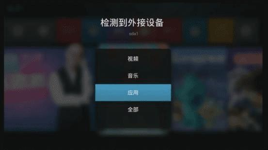 2、这时盒子会自动检测,并提示外接设备,请点击“应用”选项: