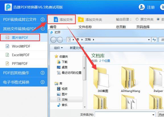 我们点击“图片转PDF”,然后再点击软件下方的添加文件按钮,把我们需要转换的图片添加进软件当中。(切记:可批量添加进行转换)