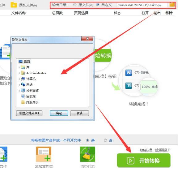 最后在软件顶部输出目录处设置转换后文件储存位置,点击“开始转换”按钮,我们的图片格式文件就会转换成PDF格式了。