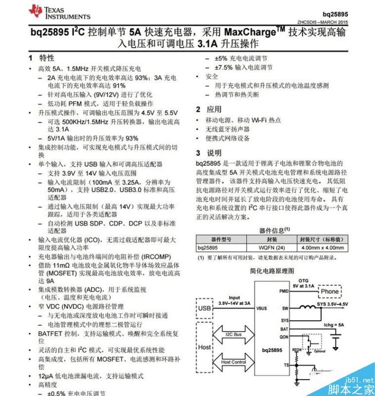 美国德仪TI BQ25895 同步降压输入芯片,与TPS61088搭配使用组成明星方案。
