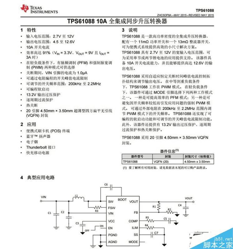 输出芯片是美国德仪TI TPS61088,风靡业界的高效同步升压芯片。