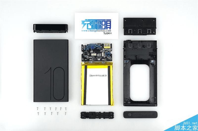分离部件一览,移动电源内框架、限位拉紧胶版、表面铭牌胶板。