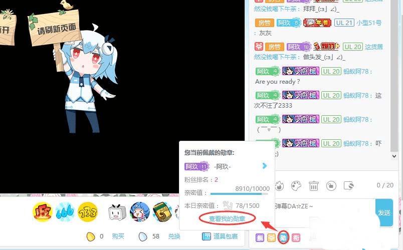 1、活动主播徽章之后,可以通过继续送礼物,以升级徽章的级别,可以通过送直播屏幕下面的道具,来增加亲密度;包括辣条、亿圆、喵娘、小电视等等;