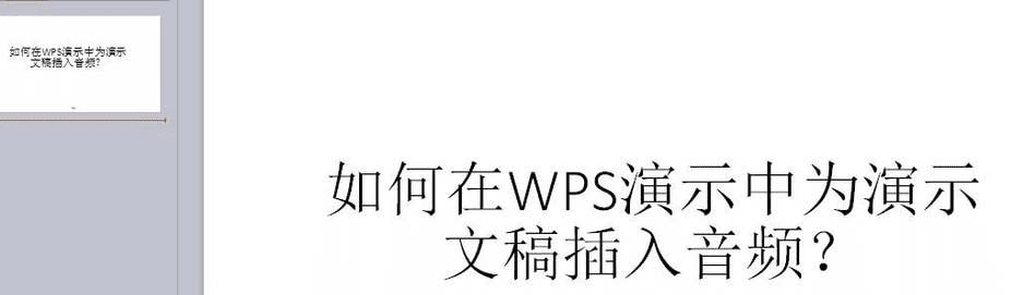 如何在WPS演示中为演示文稿插入音频?PPT在日常的工作和学习中的使用越来越广泛,掌握PPT制作的基本知识,有助于促进工作和学习。当需要为演示文稿插入音频的时候,那么在WPS中,该如何为WPS演示文稿插入音频呢?
