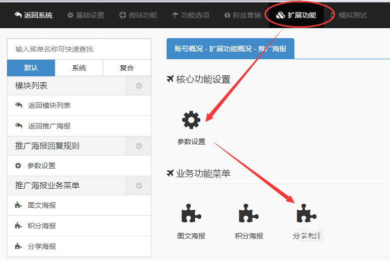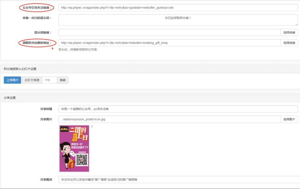 三:配置海报参数以分享海报为例(如果要实现三级推广机制,必须选用这个模式)