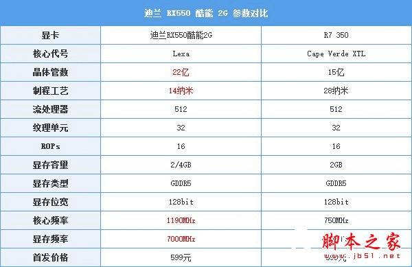 迪兰RX550酷能2G参数规格对比