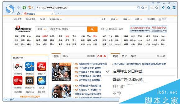 浏览器自带的广告过滤默认拦截了弹出窗口的广告。