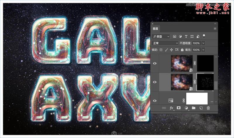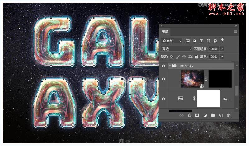 步骤1:将Galaxy图像放置在原始文本图层下方,根据需要调整其大小,并将其图层重命名为BG Stroke1。