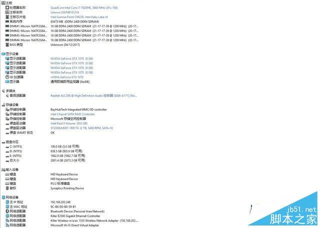 外观了解之后,我们再来看看联想拯救者Y920的配置。