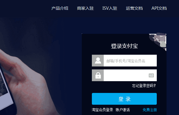 2、输入支付宝生活号的账号密码,登录开放平台。