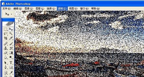2、【点状化】滤镜确定后,可看到风景图片添加上滤镜的效果了,如下图所示。