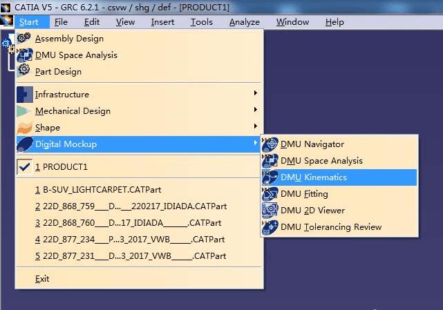 1、首先进入Caita的运动学分析模块DMU Kinematics。