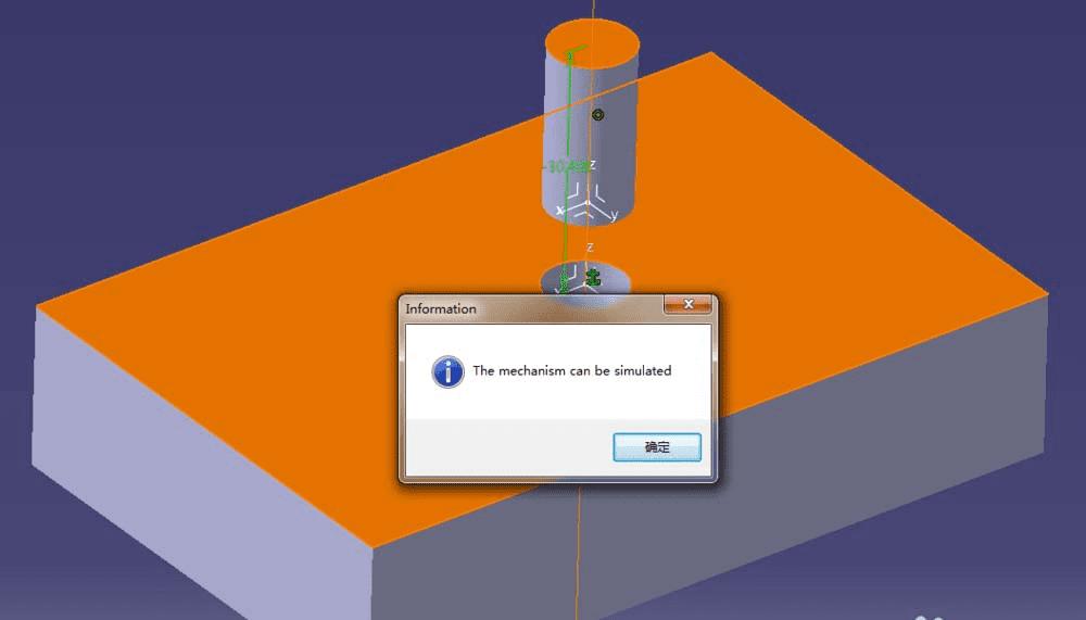 9、建立完运动关系后,我们可以看到弹出一个对话框,提示该机构已经可以进行运动仿真了。