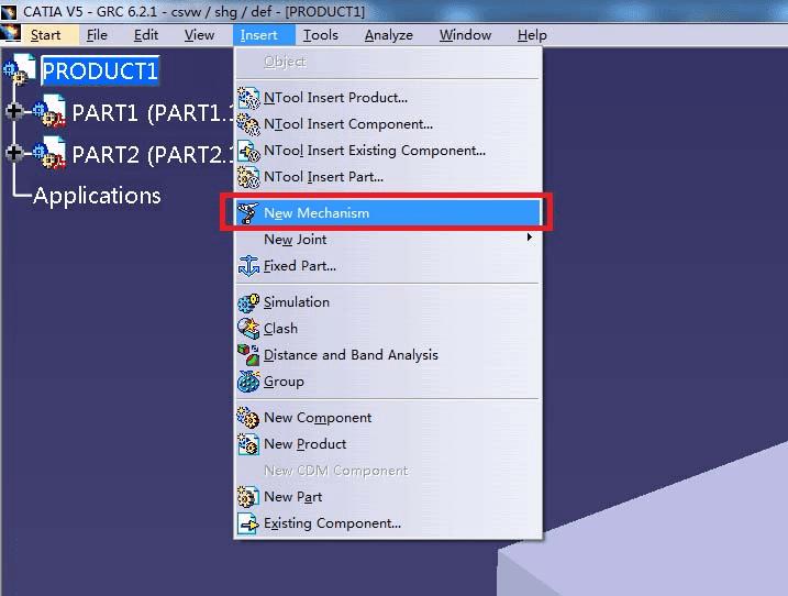 4、点击Insert,新建一个机构Mechanism。