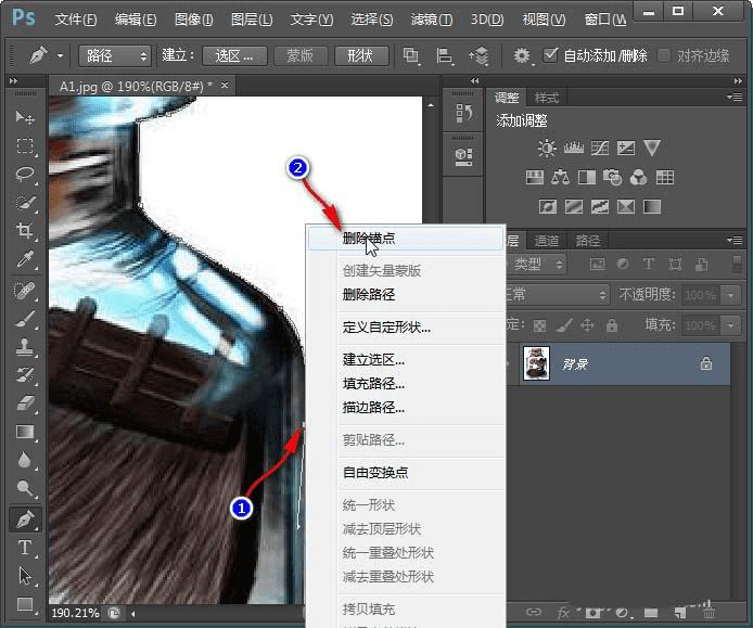 7、另外,在处理中难免有错误发生,这时可直接在当前的锚点上右键--删除锚点。