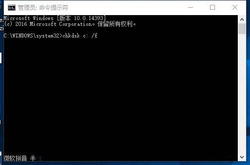 6、出现cmd命令框!输入:chkdsk c: /f 后回车,如下图所示