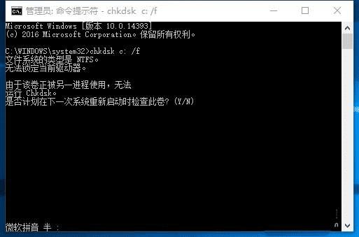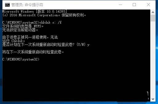 7、在提示符后面输入Y,回车,如下图所示,现在重新启动电脑静待电脑自己完全启动并修复完成!自此再没出现蓝屏!