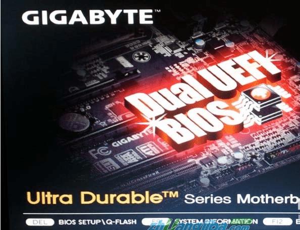 1、首先开机显示技嘉LOGO的时候按DEL键。