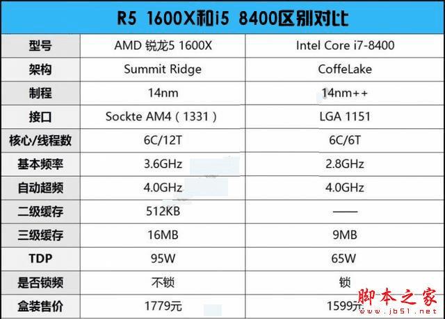 AMD锐龙5 1600x和八代酷睿i5 8400的比较介绍