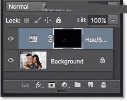 图像目前不会变化,但如果再次查看“图层”面板,我们将看到在背景图层上方添加了色相/饱和度调整图层:
