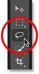 步骤1:选择套索工具。我们需要做的第一件事是选择牙齿。这样,我们就可以在不影响其他图像的情况下使其变白。要选择牙齿,请从“工具”面板中抓取套索工具:
