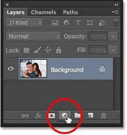 步骤3:添加色相/饱和度调整图层。选择牙齿后,我们添加色调/饱和度调整图层。单击“图层”面板底部的“新建填充或调整图层”图标: