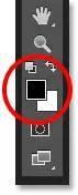 为了消除牙齿周围的不必要的光泽,我们需要用黑色涂抹在那些区域上。Photoshop使用我们当前的前景颜色作为画笔的颜色,这意味着我们需要将我们的前景颜色设置为黑色。