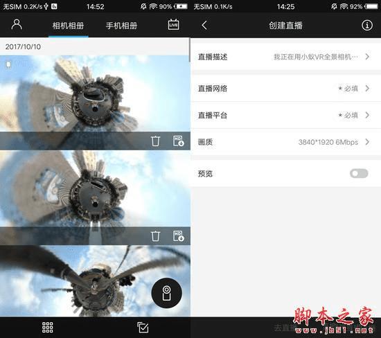 除了方便的一键拍摄,我们也可以用手机wifi互连来获得小蚁VR全景相机的控制权,不仅可以设置相机调整参数,还可以实时取景,而直播怎么玩呢,也是通过连接手机实现的。
