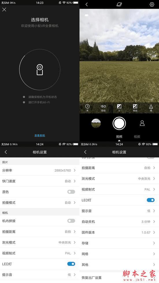 要连接手机需要先下载小蚁全景app,打开app有一键连接功能,非常的方便。连上之后常规的拍摄参数直接在界面下方显示,一目了然。打开设置界面,机器上可以设置的参数在手机上也都可以设置。