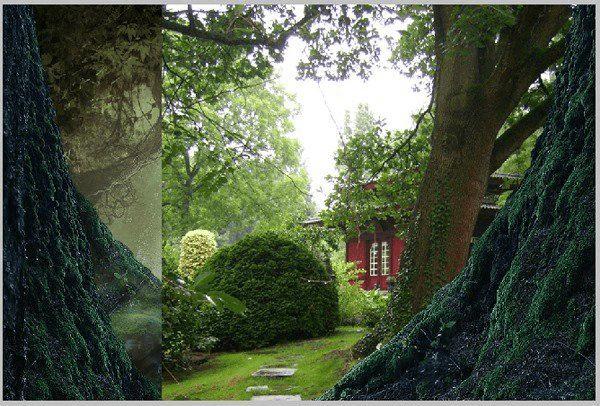 4、在这一步中,我们将会为石屋加上一扇门。打开图片女巫房,根据门的位置和大小调整图片,确保这一图层在石屋主体图层组中是在最上方。