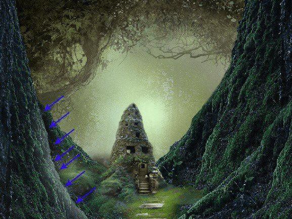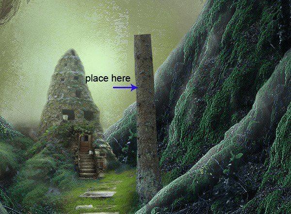 1、这一步我们会添加一个树屋!具体步骤就如下了。首先,再一次打开图片仙子房,利用套索工具,裁剪出我们需要的部分:树干。