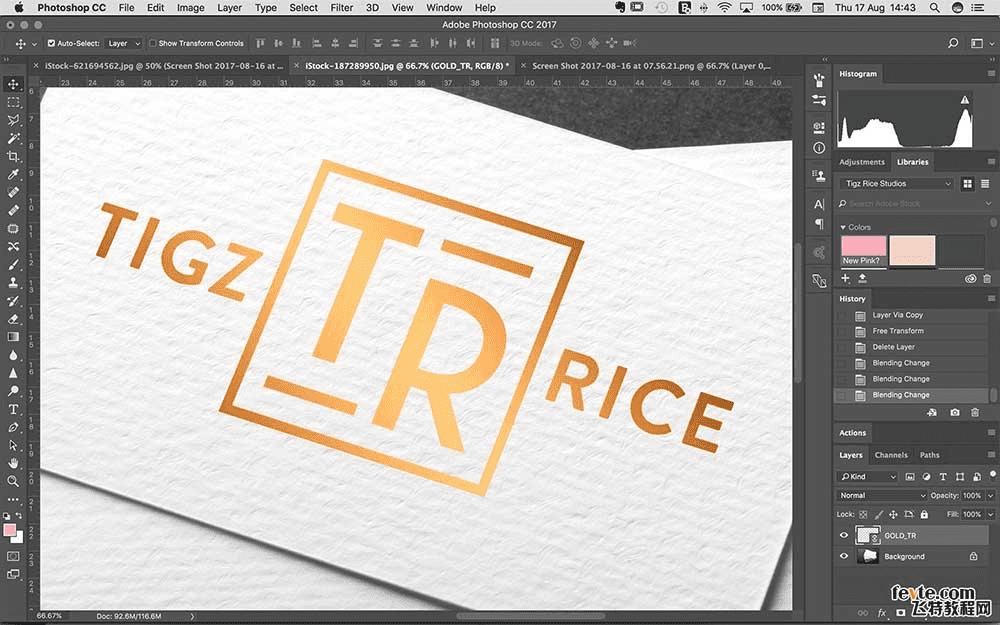 选中图标图层,点击图层→混合模式,下拉菜单里选择正片叠底模式,实体展示图就能显现出卡片上的纹路。