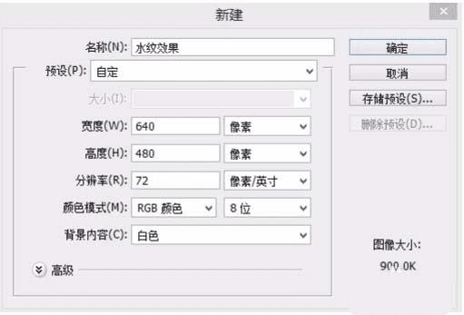 1、打开ps软件,执行ctrl+N命令,新建文件,分辨率:72dpi,大小:640×480像素,颜色模式:RGB,背景:白色。