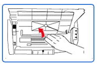 1、打开打印机存放硒鼓处的盖子,按照旁边提示将用完的硒鼓取出,轻轻放于一旁。