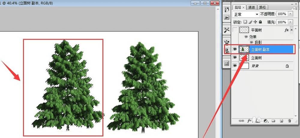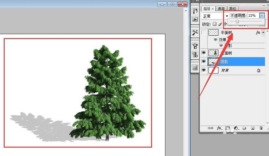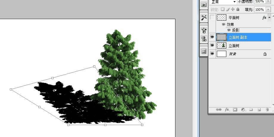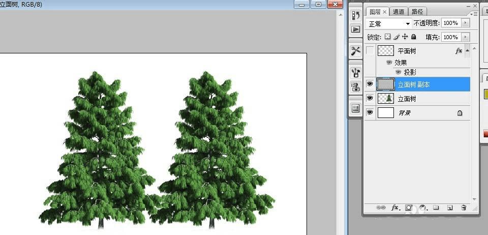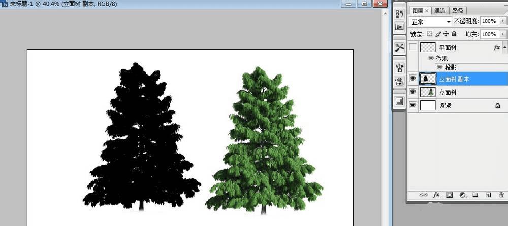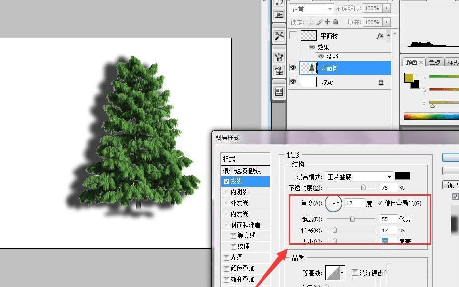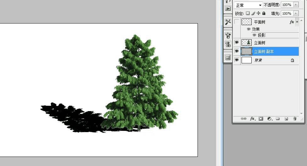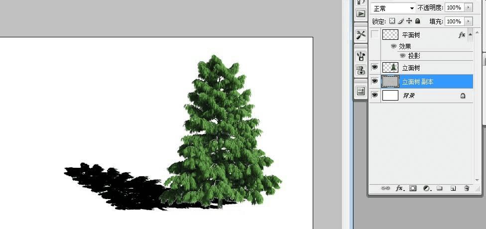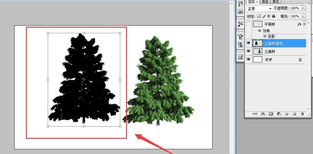 1、如果还是像刚才那样给立面树添加阴影,你会看到,这样的阴影不适合,如图所示