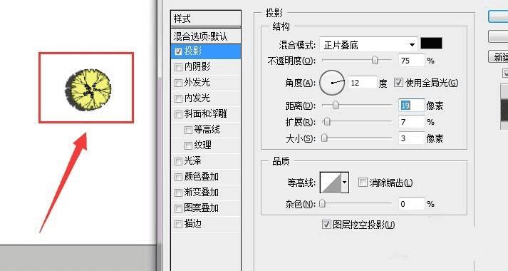 2、在弹出来的界面中,点击投影,之后这个里面有调动阴影的方向大小等等,你可以自己移动,然后看变化
