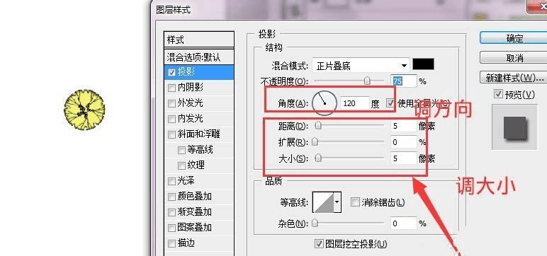 3、比如像小编这样,你会看到平面树的投影是不是调出来了呢,调到满意之后,点击确定即可