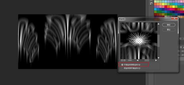 11、执行滤镜-扭曲-极坐标(此处图层的位置一定要摆放好,否则效果是出不来的)