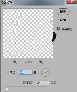 同样的,放入我们的飞刀素材,去色-调整大小,然后通过滤镜-模糊-动感模糊,给飞刀添加一个动感模糊以模拟运动效果。