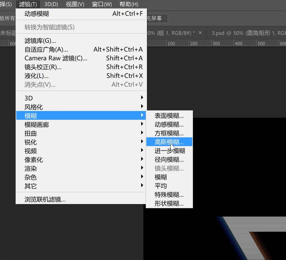 然后在最上层的这个白色的图案图层上,进行高斯模糊处理,数值小一些。