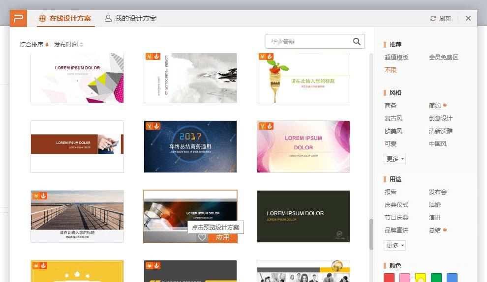 2、点击菜单栏“设计/更多设计”,弹出在线设计方案;