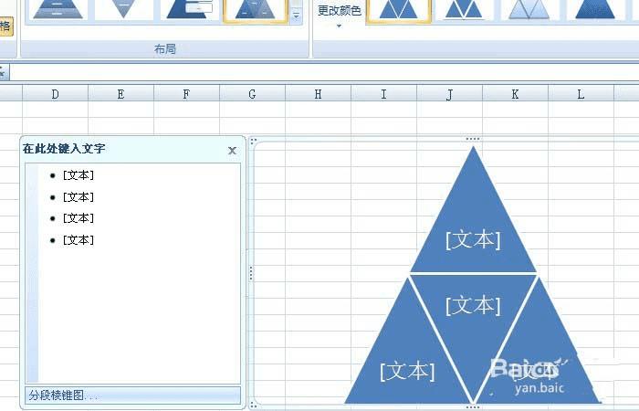 4、鼠标左键选择一个棱锥图的样式,excel表格中就出现了该棱锥图,这里选择了(棱锥型列表图),如下图所示。