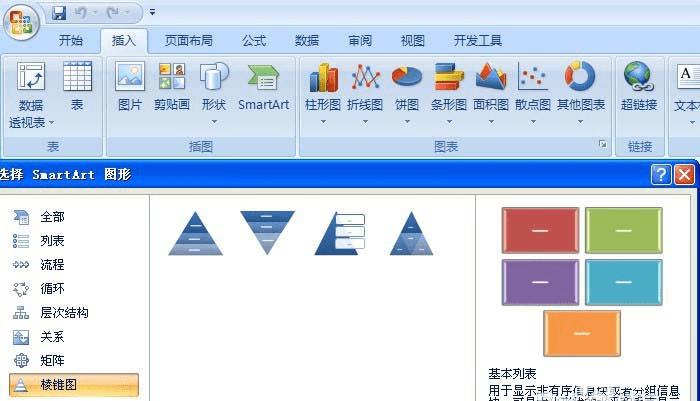 在用Excel制作表格时,制作好了一个数据表,有时需要使用不同效果的棱锥图表,这里可以用SmartArt工具。那么,Excel表中如何使用棱锥图呢?大家参考以下几步,很快可以在Excel表中使用棱锥图了。