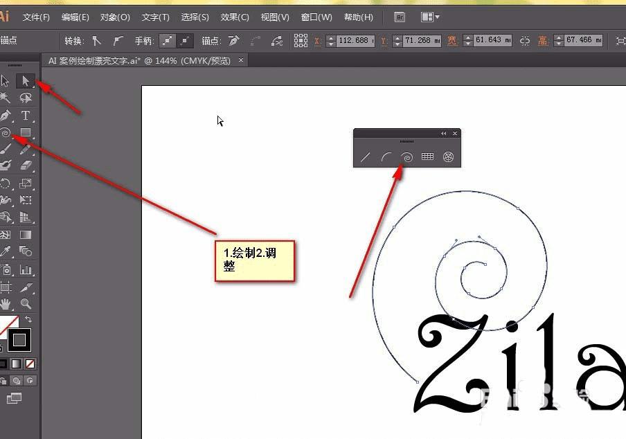 今天绘制的文字,主要使用了螺旋线工具,宽度工具。并配合选择工具,和直接选择工具调整。具体效果如图。