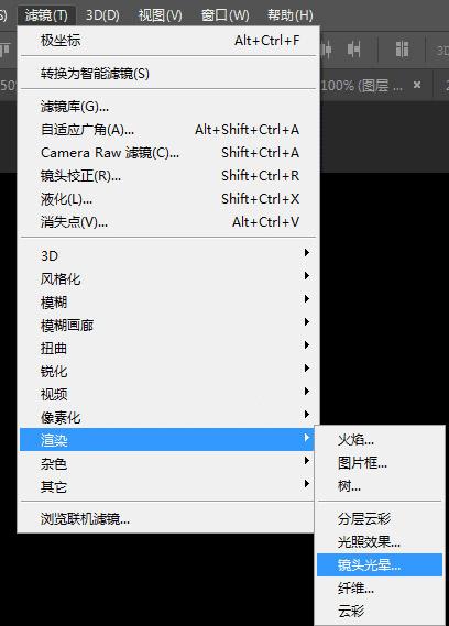 3、单击‘滤镜-渲染-镜头光晕’,用鼠标将光源点在左上角,镜头类型:电影镜头。