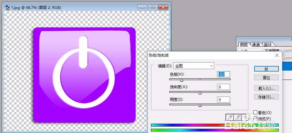 6、通过色相与对比度的工具,我们还可以把这个按钮做成一个蓝色的样子。