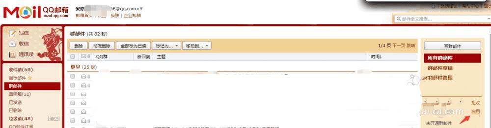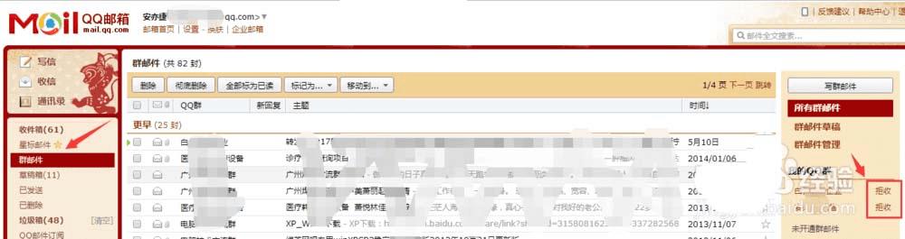 1、这功能是所有人都可以操作的。进入QQ邮箱后,在左侧点击群邮件,然后在右侧会显示“我的QQ群”,在想拒收的群后面点击“拒收”即可。