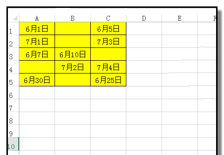 5、=COUNTIF(A1:C5,">=6-1")-COUNTIF(A1:C5,">6-30"),有些朋友可能不明白,为什么用到。可以这样理解,前段,COUNTIF(A1:C5,">=6-1")是计算出大于等于6月1日的日期出现次数。