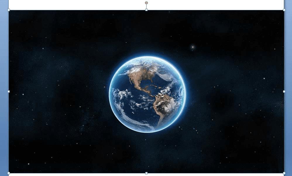 6、裁剪体现背后效果:选中刚复制的背景和地图的图片,在选项卡中选择格式——裁剪,拖动,裁剪如图所示的大小,大约只留地球一般的大小,遮住一般轨道,这就有轨道背后的效果了,如图所示。